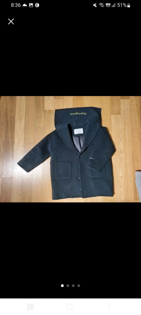 Roanjane 아동용 코트입니다 사이즈는 110이고, 5-6세 아동에게 적합합니다 사용감있고 세탁전이긴 하지만 그대로입을수 있어요 잠시 깨끗하게 입었어요