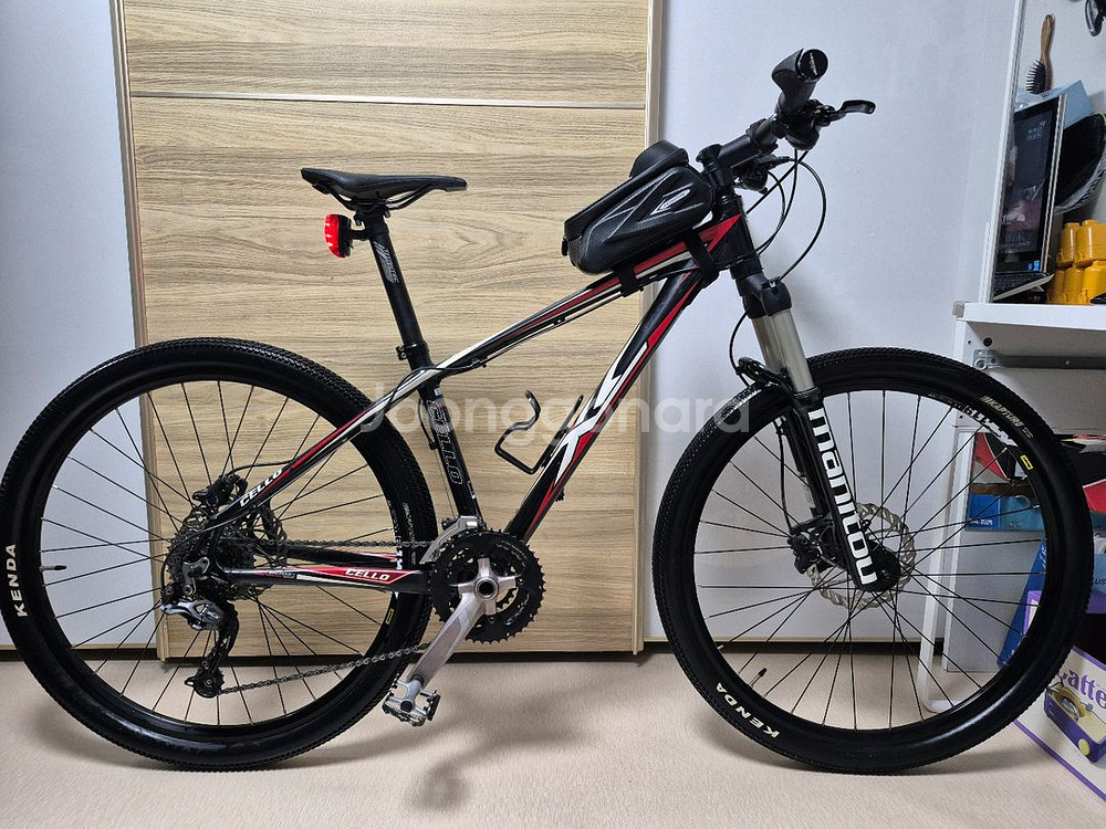 첼로 XC 30 MTB 자전거 판매합니다. 휠싸이즈 27.5 입니다 앞.뒤 모두 MAVIC 마빅 휠 입니다 라쳇소리 좋아요. 블랙, 레드, 화이트 조합의 세련된 디자인입니다. 켄다 타이어 새것과 마니또 서스펜션이 장착되어 있어 산악 라이딩에 적합하며, 시마노 SLX 27단 구동계로 부드러운 변속이 가능합니다. 프레임에 사용감으로 인한 스크래치가 있지만, 전반적으로 양호한 상태입니다. 물통 케이지와 핸들바 가방도 함께 드립니다. 모든것이 완벽하게 작동합니다 샥도좋고 유압식 브레이크 시스템 또한 완벽합니다