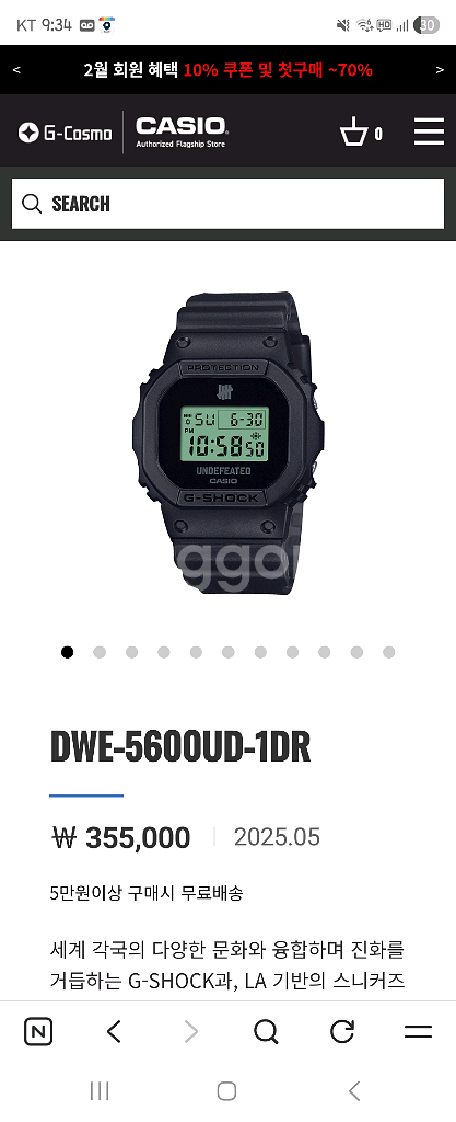 지샥 5600 언디핏 콜라보 품절난 제품입니다 실착0회 스트랩 총3개들어있습니다