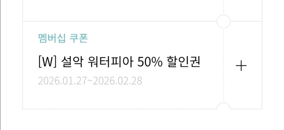 한화리조트 설악 워터피아 50% 할인권입니다. 2026년 2월까지 사용 가능합니다. 한화리조트 앱 선물하기로 보내드립니다.