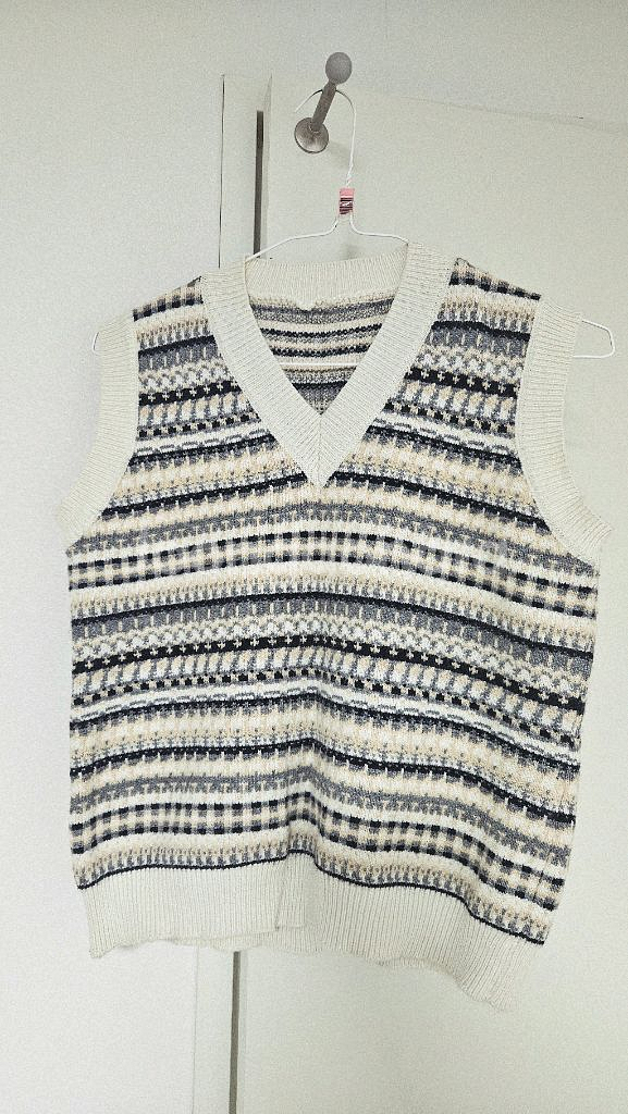 아이보리 색상의 패턴 니트 베스트 조끼입니다. 톤다운된 색감이라 여기저기 매치하기 용이합니다. 환불불가해요. 따뜻하고 촘촘한 짜임으로 레이어드로 좋습니다. 택배거래만 해요. 일반택배는 4,000원 반값택배는 (GS25만 가능) 2,000원 별도 추가해주세요. (지방 쪽은 500원 추가)