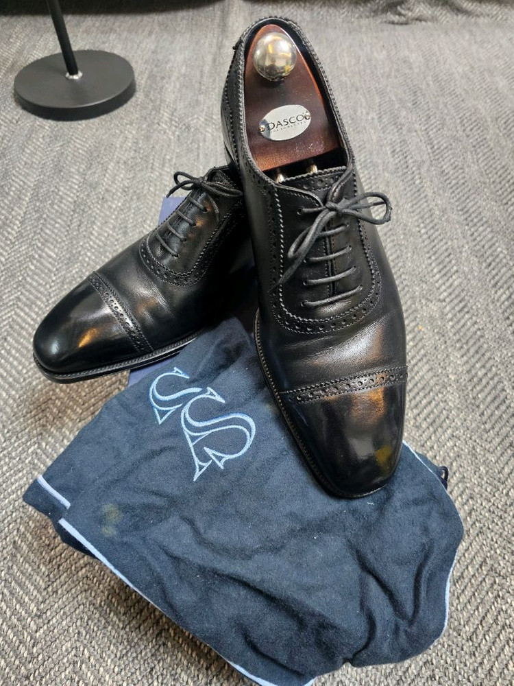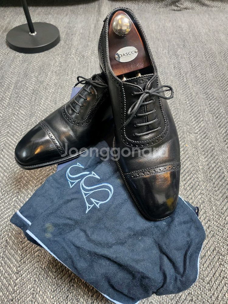 모델명 : 알프레드사전트 무어 사이즈 : Uk9(275) 컬러 : 블랙 사용감 : 적음 외피 : 가죽 바닥 : 가죽+스틸토 특이사항 : 왼쪽 힐컵 가죽데미지 판매 가격 : 368,000 구성품 유무 : 풀구성 한때 국내에서 많은 사랑을 받았던 영국 알프레드사전트의 대표모델 Moore입니다. 쿼터브로그 계열의 디자인으로, 클래식한 멋과 유려한 디자인을 동시에 어필할 수 있는 모델이라고 생각합니다. 크로켓앤존스의 웨스트번과 비교 고민하시던 분들도 제법 많으셨던걸로 기억하고 있는데, 전체적인 품질은 크로켓이 더 나았다라고 생각하지만, 디자인과 제품이 주는 분위기는 전 무어의 손을 들어주고 싶었습니다. 유려함과 투박해 보이는 거친느낌이 정말 좋은 모델입니다. 착화빈도 적고, 힐컵위에 약간의 데미지는 있으나 착용시 잘 보이지 않습니다.