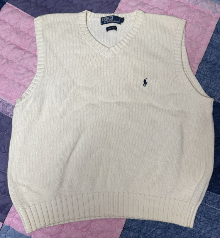 폴로 랄프로렌 아이보리 니트 조끼입니다. 셔츠나 티셔츠에 레이어드해서 입으면 예뻐요. 무난한 디자인이라 여기저기 코디하기 좋습니다. 별도 문의 없으시면 바로 안전결제 부탁드려요! 🤍 어깨 42 가슴 54 총장 58