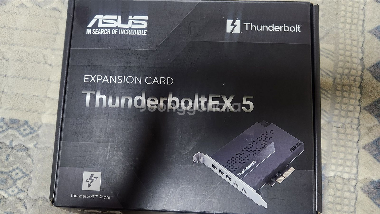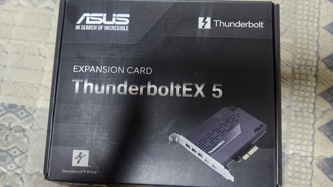 정품 ASUS ThunderboltEX 5 확장 카드입니다. 썬더볼트 5까지 사용가능한 확장카드입니다. https://www.asus.com/motherboards-components/motherboards/accessories/thunderboltex-5/ 박스와 구성품이 모두 포함되어 있고 PCIE 슬롯에 한번 꽂아보고 뺐습니다. 케이블의 경우 비닐포장을 뜯지도 않은 상태입니다.
