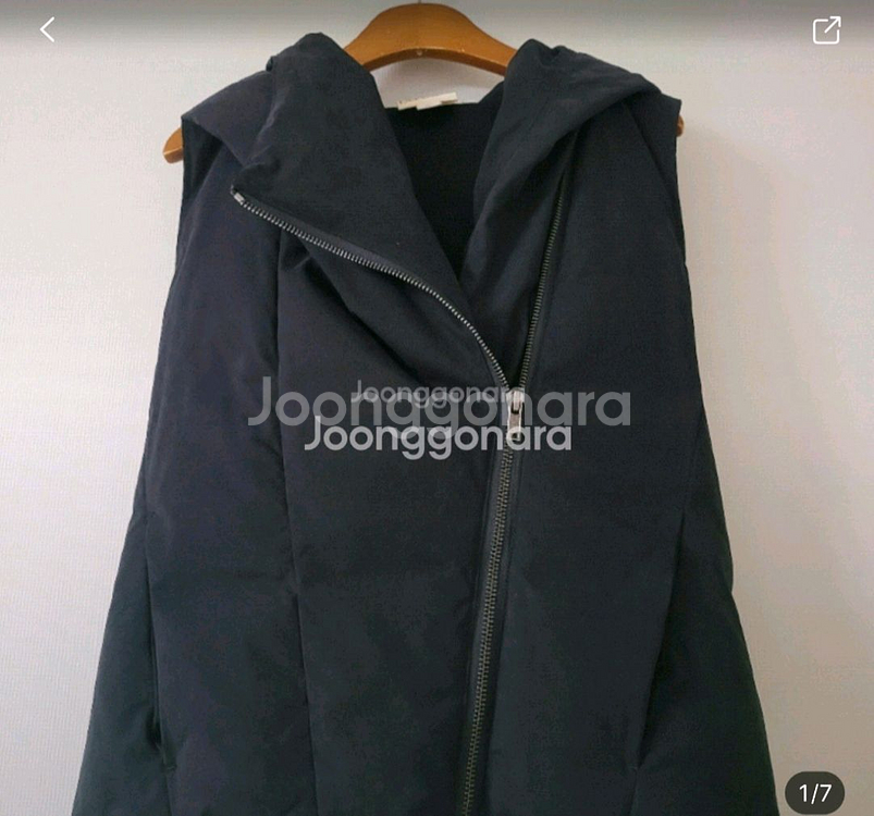 후드 블랙 패딩 조끼입니다. 핏이 예뻐서 아무데나 코디하기 좋습니다. 가슴단면43 총기장55 충전재(덕다운) 상태좋아요