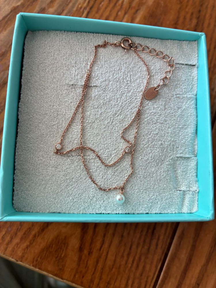 스톤헨지 로즈골드 팔찌 판매합니다 로즈골드 도금 입니다. 구입처는 평촌 롯데백화점이고 변색 되면 매장 가시면 됩니다. 저처럼 폴리백에 보관만 잘 해 주시면 14 K 아니더라도. 변색 잘 안 돼요. 박스에 담겨있으며, 진주와 큐빅 장식이 돋보이는 디자인이에요 얇은 체인으로 되어 있어 가볍고 데일리로 착용하기 좋습니다 상태는 사진과 같이 깨끗하고 좋습니다 저는 이렇게 여리여리한 비슷한 팔찌가 많아서 판매 하고자 합니다 구매후 매장에서 실측 해 본 후에 한 번도 착용 하지 않은 새제품입니다.