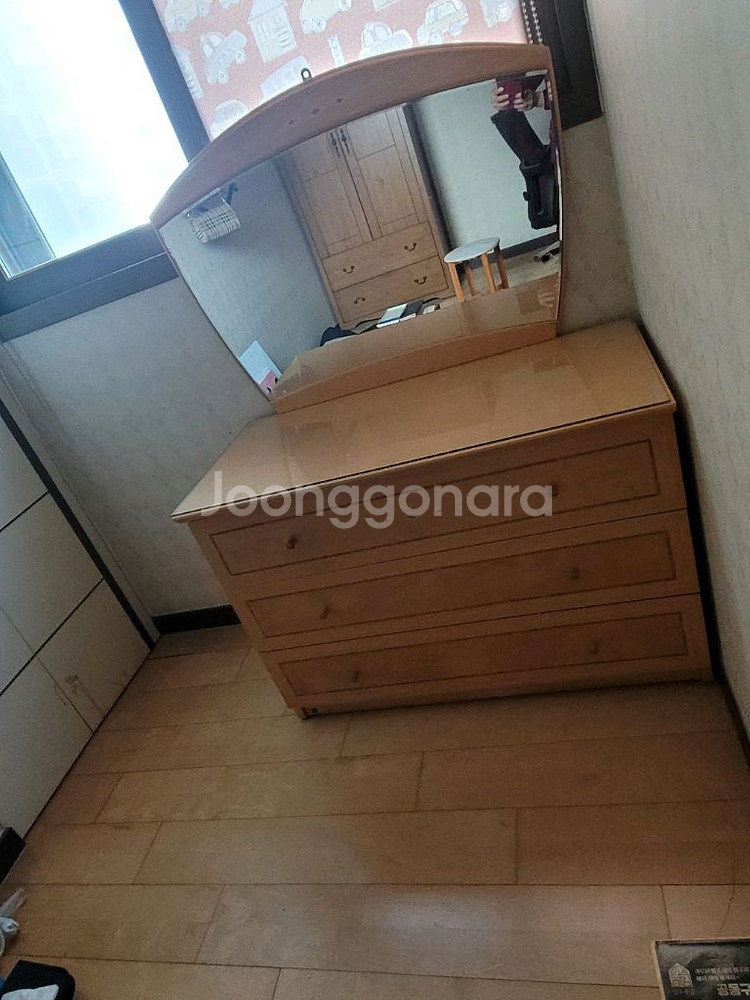 라자가구입니다 3단 서랍장겸 화장대로 수납공간이 넉넉하고 거울이 포함되어 있습니다 시랍장위 유리도 포함입니다 가로 105cm 세로53cm 거울을 내 키에 맞게 벽에 걸어놓고 쓰면 훨씬 좋아요 상태는 사진과 같이 양호합니다 기스 전혀없구요 이사갈 집에 놓을 데가 없어서 필요한 사람 찾습니다 2월 26일 이사갑니다