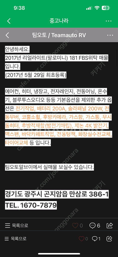 포레스트리버 리얼라이트 181FBS확장형 판매합니다 2017년식이며, 침상 확장, 무시동, 어닝천갈이등 팀오토에서 정식 출고 차량이며 제가 두번째 주인입니다 전용주차장에서 관리되고있습니다 견인차량은 카니발 모하비들 가능합니다 최근 MT타이어로 교환 및 바닥 러그 교체하여 발시럽지않고 따뜻합니다 쿨거래시 반고 어닝텐트+어넥스텐트 함께드리겠습니다 텐트 전문 세탁업체에서 36만원들여 세탁후 한반도 사용하지않았습니디