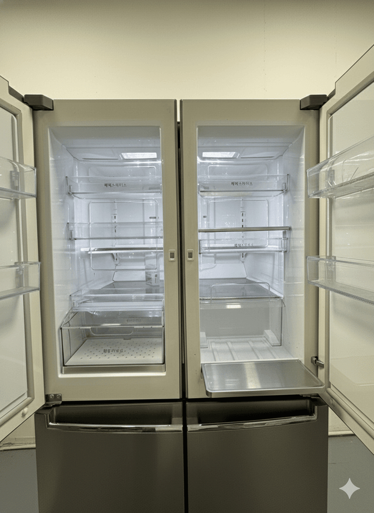 엘지 히든4도어 냉장고예요. 스테인리스 소재로 깔끔하고 고급스러운 디자인이며, 내부도 깨끗한 상태입니다. 실사용 제품으로 관리 잘 되어 있어요. 겉은 찍힘 없고 냉동고쪽 손잡이 생활기스 있는데 사무실에서 사용하던거라 거의 만질일도 사용할 일도 없었습니다 - 모델명 : F879SN53 - 870리터 입니다 2월중에 갖고가셔야하고 1층 상가라 언제든지 갖고가실 수 있어요 이번에 이사가면서 사용이 필요없게되어 판매합니다 직접 가져가셔야하구요.