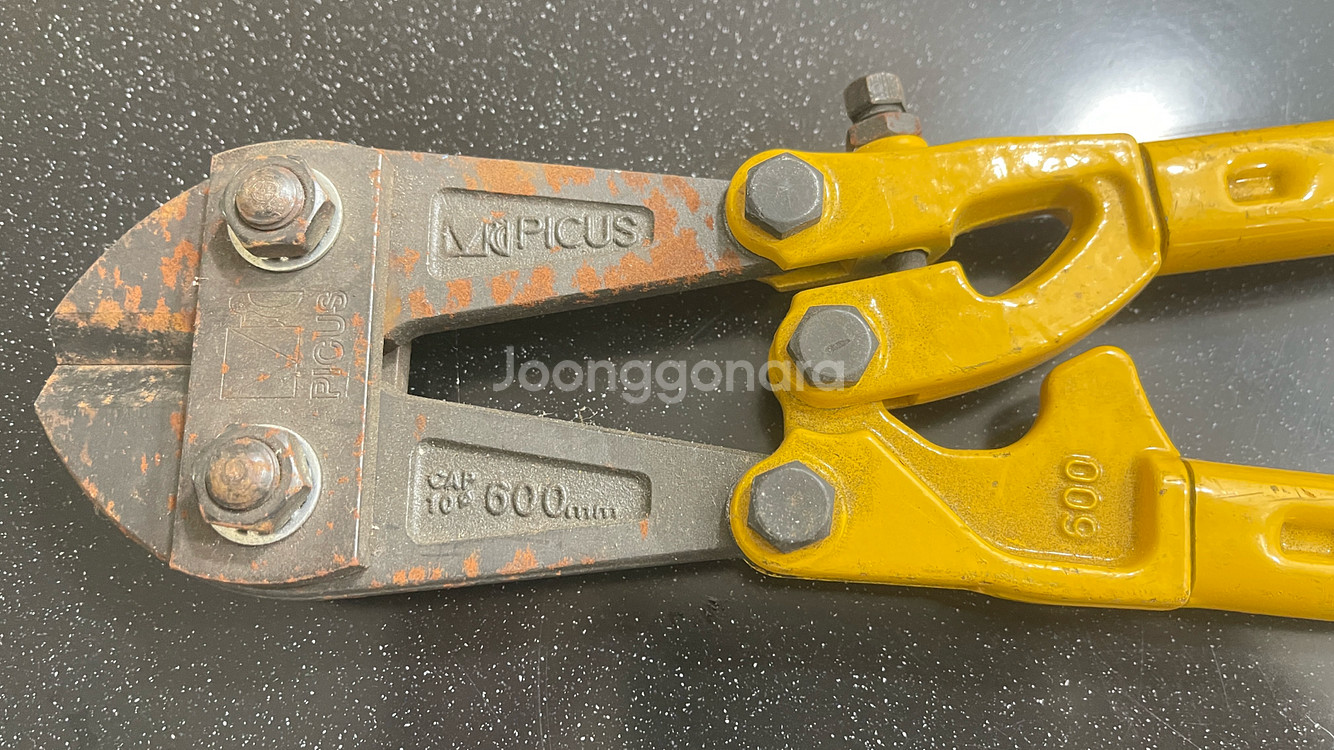 PICUS 볼트 커터 600mm 판매합니다 노란색과 빨간색 조합으로 눈에 잘 띄는 디자인이에요 사용감은 거의 없음 새 데품과 동일 , 볼트 커터의 핵심 기능인 절단력과 내구성이 뛰어나 작업 효율을 높여줍니다 사진에서 보시는 것처럼 약간의 녹슨 부분이 있지만, 사용에는 전혀 문제 없습니다