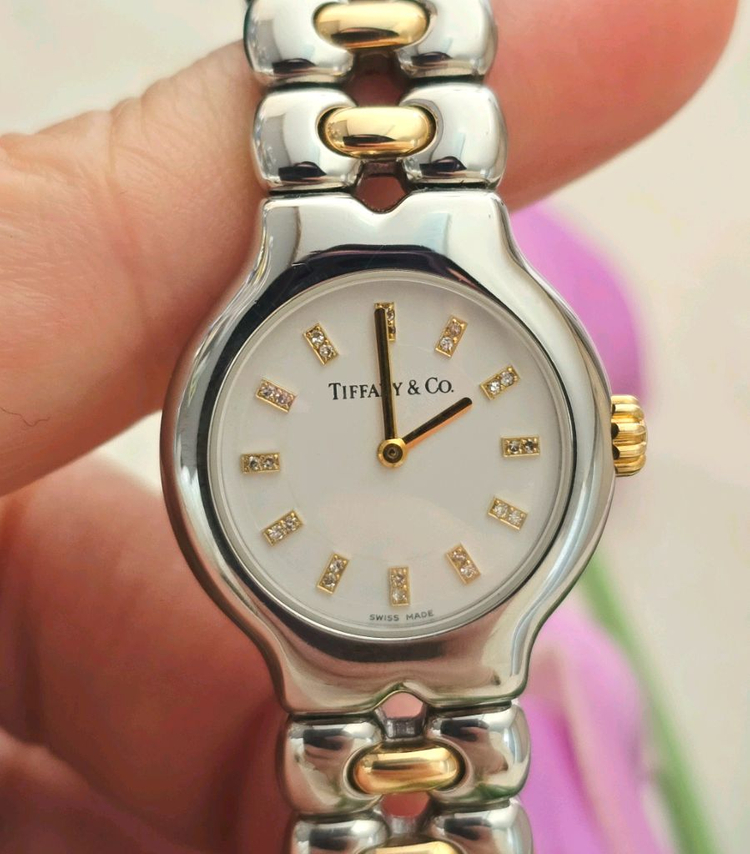 ○ 사이즈: 26mm ○ 길이 : 16cm ○ 구성: 사진참조 ○ 컨디션: 양호 ○ 무브먼트 : 쿼츠식(건전지) ○ MADE IN SWISS 티파니앤코만의 깔끔하고 클래식한 디자인에 노랑 부분 점부 18k골드이며 시계판에 24개 다이아몬드 박혀있습니다.진짜 찾기 힘든 디자인이며 반짝반짝 빛난다. 너무나 고급스럽고 착용하실때 더욱 부티납니다. 정장이나 캐쥬얼 다 잘 어울립니다. ◇◇ 100% 정품이며 아닐시 100% 환불해드립니다. 안심하고 구매하십시오. ■■■ 빈티지 특성상 구매후 교환 반품 어려운 점 양해부탁드립니다.