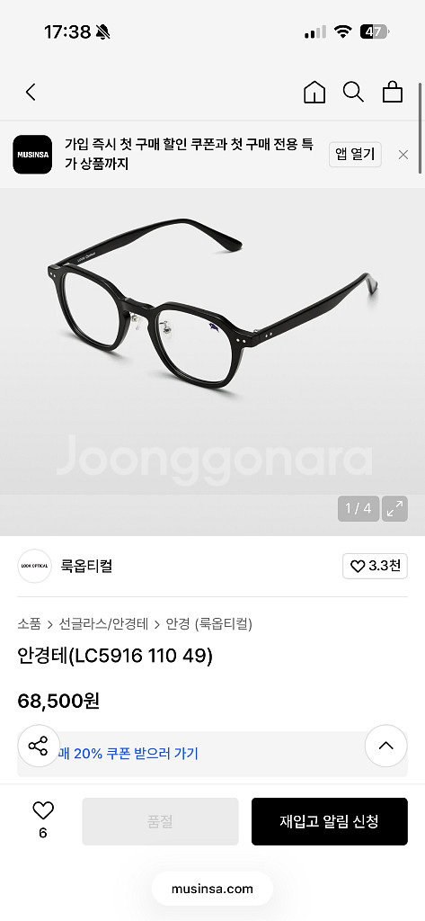 룩옵티컬 LC5916 블랙 안경테 + 블루라이트 렌즈