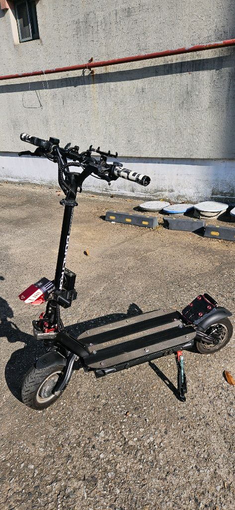 기함급 ]듀얼트론 썬더 전동킥보드 A급 판매합니다. 현재 방안에 보관중(부모님댁에 있어요) 또한 킬로수 늘어나지않습니다 사진과 보다시피 편의장비및 안전위해 댐퍼까지 장착 또, 보조배터리두 장착!! (야간라이트 키고 다니면 바이크보다 더 밝아요.) 소모품(브레이크오일 및 앞뒤패드교환,베어링앞뒤교환) 시속98km까지 잘 나갑니다. (여름철 직진평지형에서 달려봤습니다.) 더~ 땡겨두 나갈거같은데 위험해서 못 달려보았습니다. 기능상 문제없이 잘 작동합니다. 우천시 주행 한번두 한적 없으며, 제 애마 비 맞아본적 없습니다. 주행 안할때는 작은방에 보관했습니다. 집 자전거보관창고나 밖에 주차한적 없습니다. 배터리 완충시 65.9v나옵니다. (사진상 햇빛에 비추어 LED 단락처럼 보입니다 정상임) 배터리셀 밸런싱 잘 나옵니다. 킥보드 안 탈때 배터리 50~60%정도만 충전해놨습니다. 이거외 고속충전기,경보기 리모컨,LED변환리모컨,헬멧 자물쇠까지 드립니다. 경보기는 방전 염려로 탈거한상태,크락션은 고장나서 혼만 빼놓은상태 배선연결은 다 되있습니다. 혼만 따로 사셔서 배선 연결만하면 정상작동 됨) 애지중지 했던녀석이며.참고로 직업 이 자동차정비사 입니다. 마실용 위주로(마트,은행,관공서.사우나,묭실)가는정도 사용했습니다. 가까운곳 또는 구입의사있음 기름값정도 주심 가져 다 드립니다. 꽉 막힌 사람 아닙니다. 쿨거래시 절충해드리겠습니다. 연락주세요.
