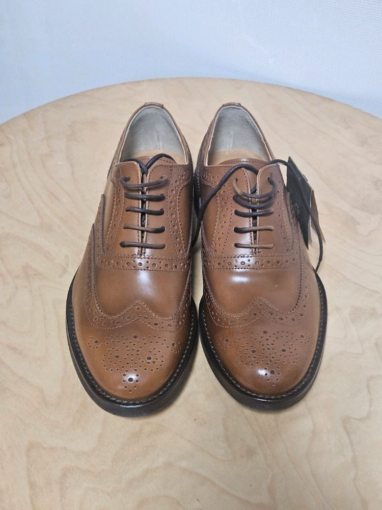 개인정보(거래정보)를 주고받는 행위는 사기에 노출될 수 있으므로 즉시 중고나라로 신고해 주세요정통 브로그 디자인의 남성용 정장화예요. 깔끔한 브라운 컬러에 상태도 양호해서 비즈니스나 포멀한 자리에 착용하기 좋을 것 같아요. 밑창도 튼튼하고 전체적으로 관리 잘 된 상품입니다. 새겁니다. 한번도 안신었어요. 언제 어디서 산 어떤 브랜드 제품인지는 모르겠어요.