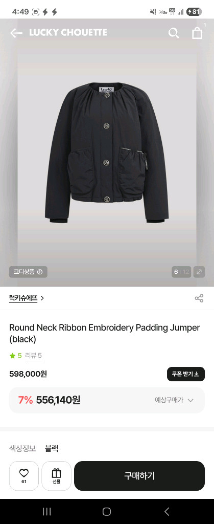 이번 신상 매장구매 사이즈 36 한두번 착용 솜패딩점퍼라 레이어드하셔서 입음 지금부터 초봄까지가능 타브랜드 비슷한 스탈 구매해서 내놓음 반품불가 매장as가능