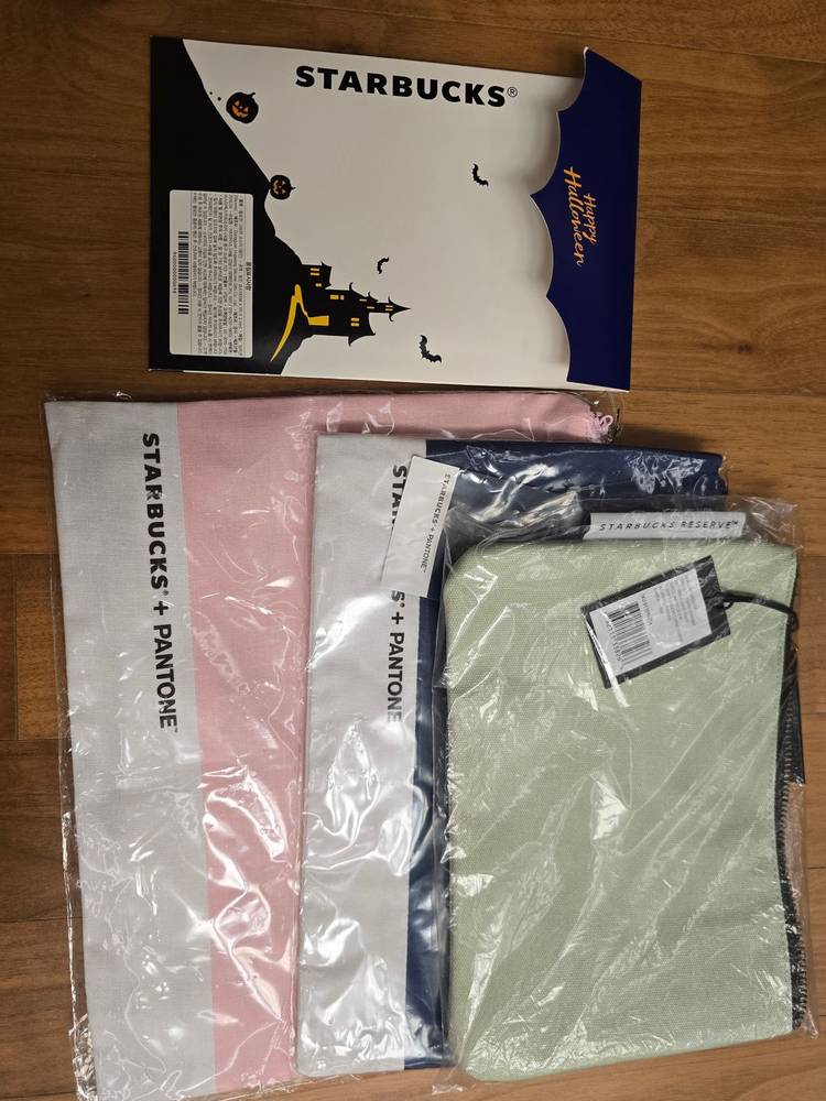 스타벅스 미사용 새상품입니다. 1.스타벅스 대한항공 버클업 Buckle Up 22년 콜라보MD 10만원.(판매완료) 2.스타벅스 마일로 폴더블백 3.5만원 (판매왼료) 3.스타벅스 스피링 북 파우치 2020 봄MD 3.5만원. 4.스타벅스 리저브 라이트그린 파우치 1.5만원 5.스타벅스 2018 팬톤 파우치 블루 1.5만원. 6.스타벅스 2018 팬톤 파우치 핑크 1.5만원. 7.스타벅스 2018할로윈 그림자코스터 5천원. 8.스타벅스 2020썸머 꾸러미 백 2만원. 9.스타벅스 2019 데님 보냉백 5.5만원. 10. 스타벅스 RTD 피크닉 보냉백 5만원.