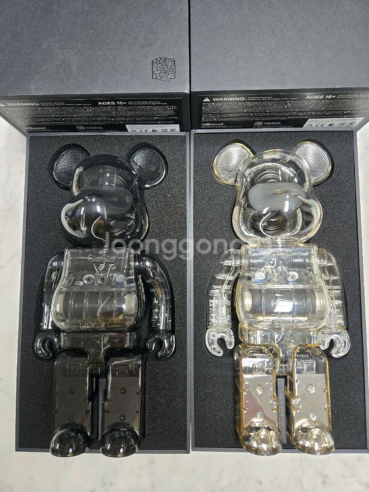 베어브릭 400% 오디오 겸 스피커 스모크, 클리어 색상 2개 세트입니다. 박스에 담겨있는 제품으로 오브제로만 사용했습니다. 정품이며, 소장 가치가 높은 제품입니다. 투명한 바디 안에 보이는 디테일이 매력적이며, 인테리어 소품으로도 훌륭합니다.