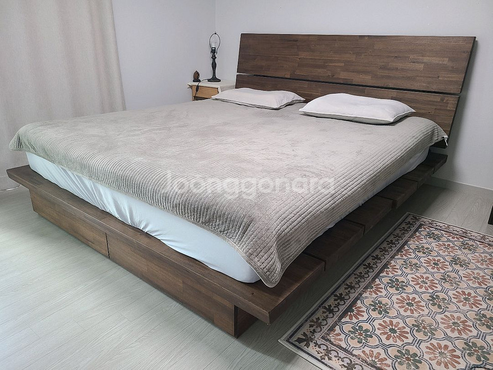 원목 침대 프레임 + 지누스 매트리스 판매합니다 월넛 색상 원목으로 2년 전 구매하여 사진에서 보시는 것처럼 사용감이 적고 깨끗하게 관리되었습니다 프레임 자체가 원목이라 무거워요 차분하고 고급스러운 느낌 줘요 퀄리티 최상이구요 매트리스는 지누스 라지킹 메모리폼이에요. 매트리스 커버도 드립니다. (매트리스는 청소 한번 싹 해서 드립니다) 무게가 꽤 되서 청주내에서는 용달비가 20만원이라고 하네요. 참고하세욥 프레임 사이즈 230x200x26.5 매트리스 사이즈 180x200x29