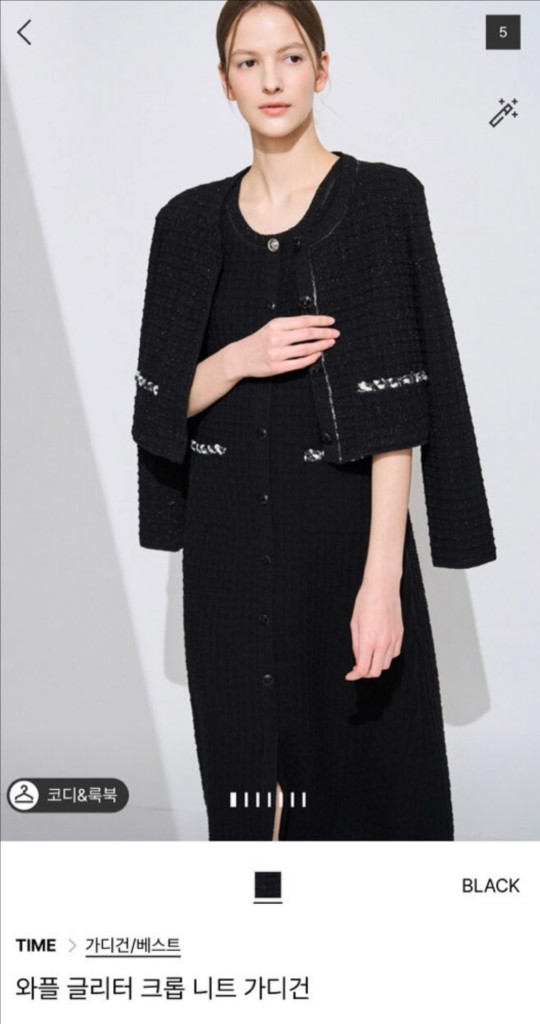 "따로 또 같이" 활용도 만점인 타임(TIME)의 시그니처 셋업입니다. 은은한 글리터와 고급스러운 와플 조직감이 실물로 보았을 때 훨씬 세련된 제품이에요. 🛒 판매 가격 • 세트 구매 시: 100만원 • 원피스 단품: 55만원 • 가디건 단품: 45만원 (세트/단품 판매하며, 세트 구매 시 에누리 가능합니다!) ✨ 상세 정보 • 디자인: * 원피스: 활동성 좋은 앞트임이 있는 슬리브리스 디자인 • 가디건: 다리가 길어 보이는 세련된 크롭 기장 • 소재: 면 68%, 나일론 31%, 폴리에스터 1% (탄탄한 와플 조직) • 색상: BK (블랙 + 고급스러운 글리터 디테일) • 사이즈: 90 사이즈 (키 175cm, 55사이즈 모델 착용 기준) 📍 거래 안내 • 제품 상태: 1회 착용 / 거의 새상품 • 거래 방법: 직거래 및 택배 가능