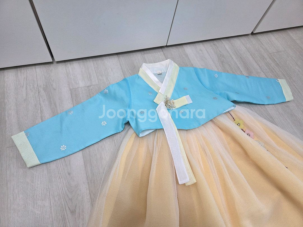 치마 드레스처럼 이쁘 한복입니다 한복에 붙은 브로치 노리개는 한복에 바느질해놔서 안떨어져요 머리띠도 같이입니다 예민하신분은 피해주세요