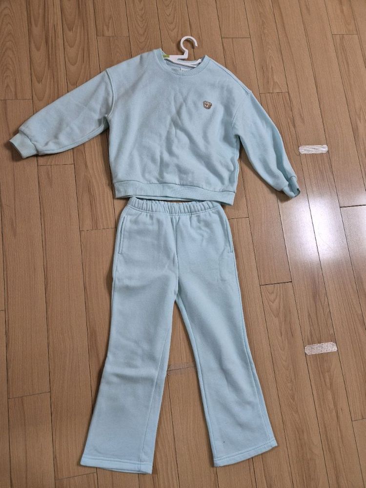 폴햄 키즈 기모 상하복 세트 130사이즈입니다 색상은 예쁜 민트색이고, 상의에는 귀여운 곰돌이 자수가 있어요 기모 안감으로 따뜻하게 입을 수 있습니다 소매 부분에 약간의 오염이 있지만, 전체적으로 깨끗한 편입니다 면 60%, 폴리에스터 40% 혼방 소재로 부드럽고 편안합니다 몇번 안입어서 상태 좋은데, 팔 뒷쪽부분에 얼룩 있습니다.