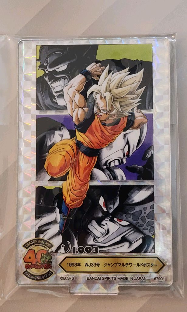 드래곤볼 40주년 2탄 제일복권 F상 아크릴스탠드 손오공 시크릿 판매합니다 40주년 제품 F상 아크릴 스탠드 20개 중에서 시크릿 1개만 있는 F-17번 상품입니다 드래곤볼 손오공이 싸웠던 숙적 피콜로, 프리더 , 셀 등이 잘 그려져 있는 멋진 프리즘 아크릴스탠드입니다. 1993년도 점프 포스터라고 하네요. 관심있으신 분은 연락주세요. 직거래, 택배거래(배송비 별도) 가능입니다^^