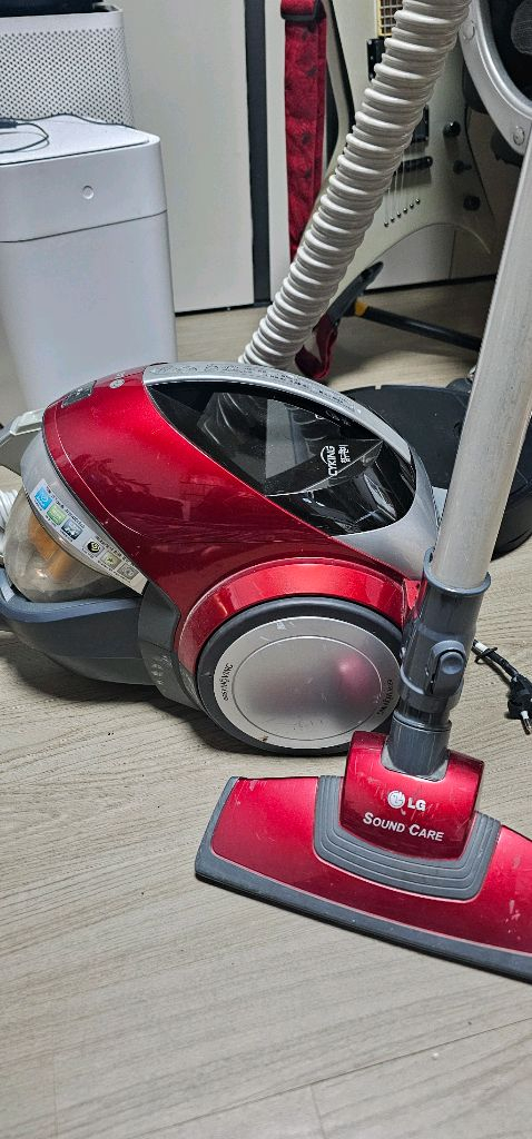 LG 싸이킹 컴프레서 유선청소기 . . 컴프레서 라인으로 LG 유선청소기중에선 상급 라인 제품이있습니다. . 침구툴 연결가능한 모델인데... 침구툴은 없습니다. . 일반 청소기로 사용은 아무 문제 없습니다. . 전원선 중간에 단선되서 이어놨습니다. 단순 단선수리라 사용엔 아무 지장없습니다.