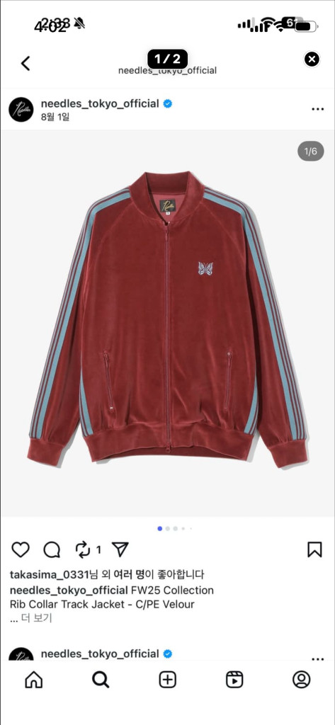 니들스 트랙자켓 벨루어