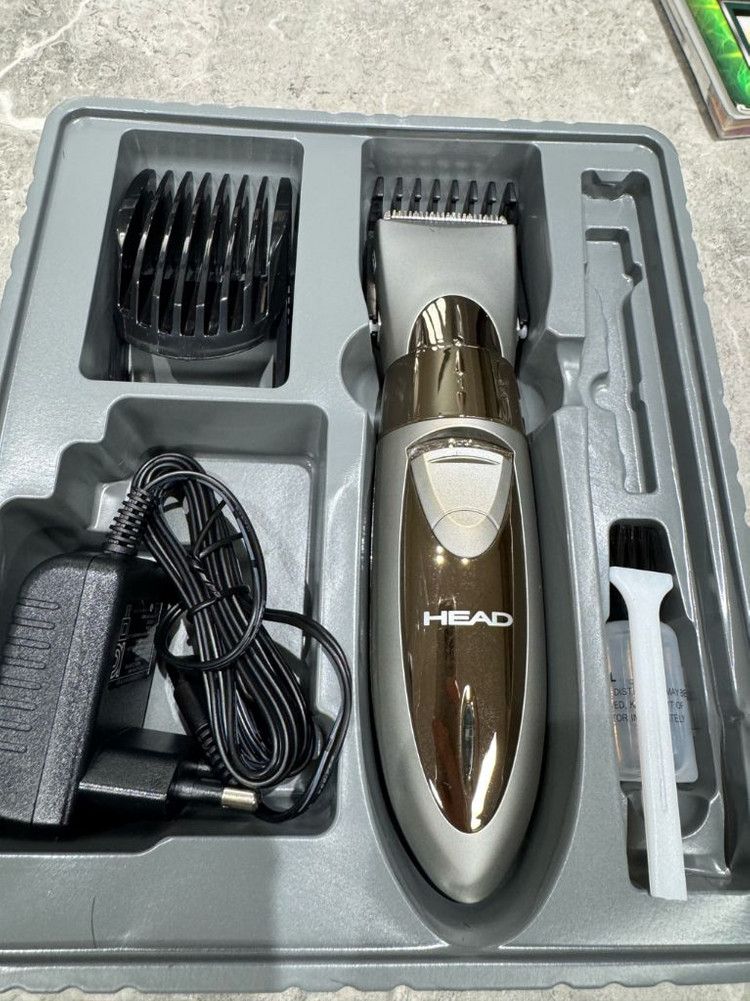전기면도기 완전세트예요! 본체, 충전기, 면도날, 클리퍼 등 구성품이 모두 포함되어 있고 박스도 깔끔하게 보관되어 있어요. 한번사용함