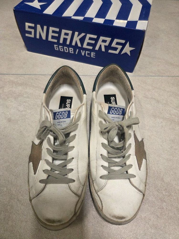 정품 슈퍼스타 화이트 컬러 42사이즈입니다. 착용감 있지만 전체적으로 깔끔한 상태예요. 박스 포함해서 판매합니다! 골든구스 슈퍼스타 스니커즈 42사이즈 구매하자마자 10만원주고 비브람으로 밑창보강 했어서 실제 골든구스신발 밑창은 하나도 안닳았습니다 밑창 제거하면 새바닥 입니다.