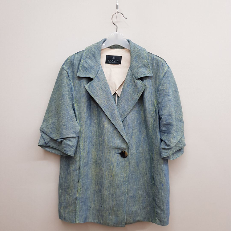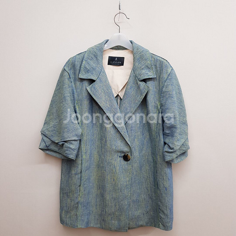 > 소재: 마 100% > 상태: 최상 > 사이즈: 82-94-160사이즈 총장 70 가슴단면 49 어깨 46 팔길이 33 > 특징 라이트한 블루 톤의 린넨 텍스처가 돋보이는 랑방 컬렉션 반팔 자켓입니다. 내추럴한 마 100% 겉감으로 제작되어 통기성이 우수하며, 여름 시즌에도 부담 없이 착용하기 좋은 아이템입니다. 클래식한 테일러드 카라와 싱글 버튼 디자인에 반팔 실루엣을 더해 단정하면서도 캐주얼한 무드를 동시에 연출할 수 있습니다. 내부는 면과 레이온 배색 안감으로 마감되어 착용감이 부드럽고 안정적이며, 단독은 물론 원피스나 슬랙스와 매치해 세련된 데일리·오피스 룩으로 활용도가 높습니다. 린넨 특유의 자연스러운 조직감과 컬러 믹스가 고급스러운 포인트를 더해주는 자켓입니다. 택배비 착불 혹은 3000원입니다. 중고라서 교환 환불 안되는점 이해부탁드립니다.