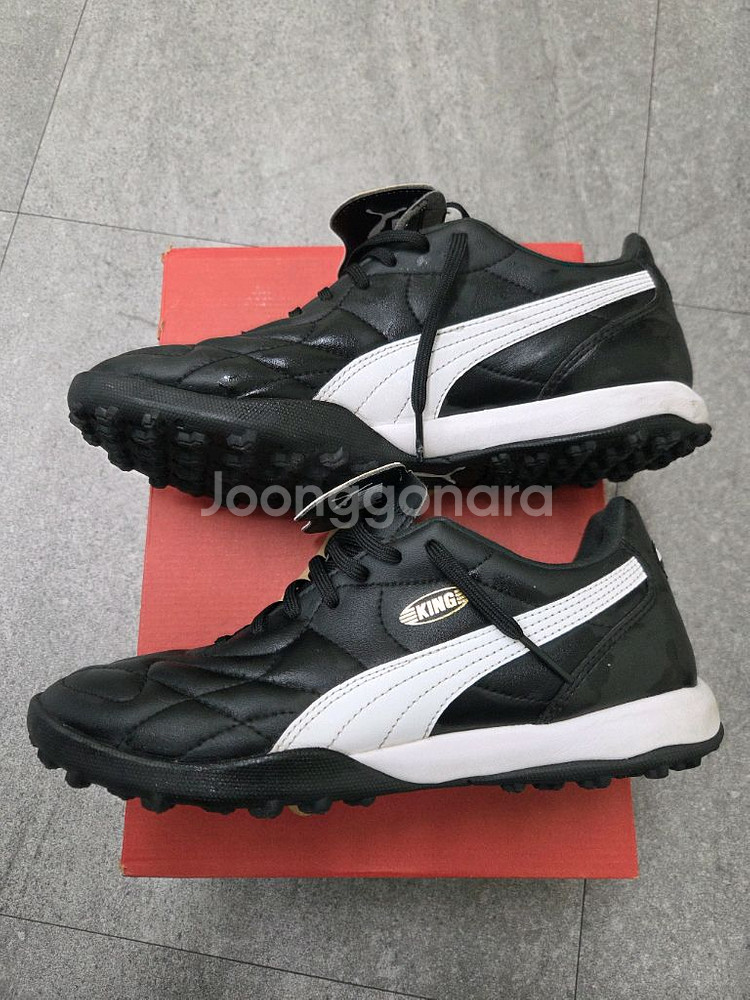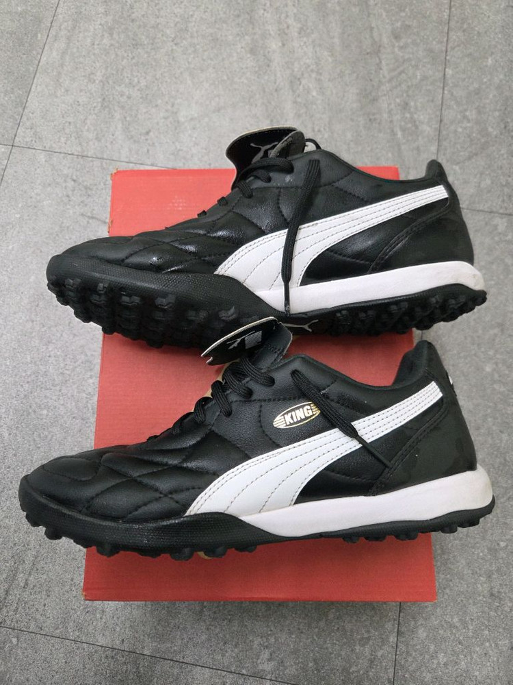 푸마 킹탑TT 풋살화 275사이즈 운동화 270 신으시면 맞을 것 같습니다 칼발이시면 275도 가능 풀타임으로 뛴 적은 없어서 깨끗합니다 5회 착용