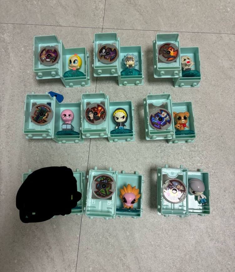 신비아파트 피규어 8와 보관함 세트입니다. 보관함, 고스트칩 모두 있습니다. 전반적으로 상태 양호하나, 이안은 발판이 없고 마리오네트퀸, 모주귀만 본드로 부착흔적 있습니다. (일괄판매)