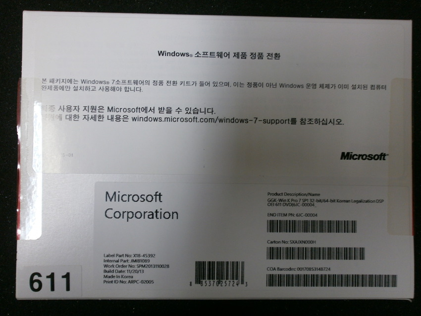 Windows 7 Pro GGK 32.64겸용 한글 (단속에걸였을때구매) GGK Win 7 Pro 32.64겸용 한글 Windows 7 Pro GGK 32.64겸용 한글 기업용 미개봉 재품입니다 개당15만원 본 제품은 윈도우의 표지에 써있는 그대로 불법으로 윈도우를 사용하는 것을 인지 하엿을 때 구매하시고설치 하시면 됩니다 단속에 걸렸을때도 구매하시고 설치하시면 법적으로 문제가 없습니다 기업.관공서.학교기타 어디에서나 사용해도 법적으로 문제가 없습니다 시디키를 넣어서 바로 사용이 가능한 제품입니다 제품에 시디키가 있으므로 구매 후 개봉하거나 포장 훼손시 반품 불가합니다 소프트웨어 특성상 시디키의 노출로 인해 반품 불가하오니 신중한 구매바랍니다 오후5.30이전에 구매하시면 당일 발송합니다 문의 010 8221 일영구이