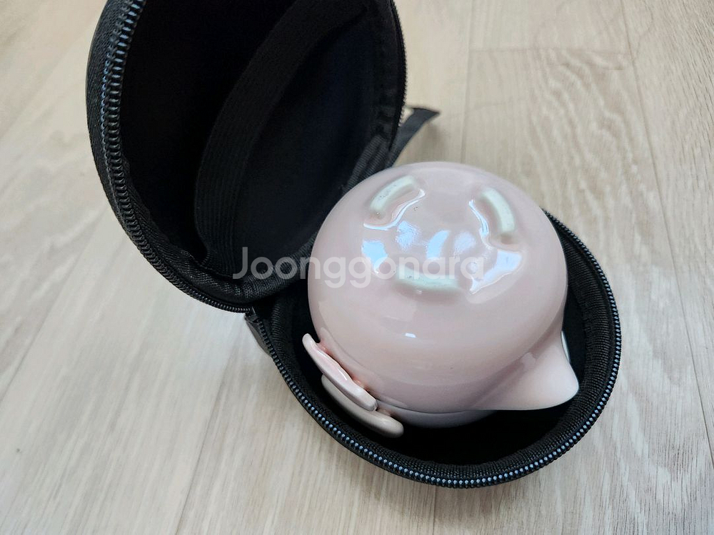 귀여운 핑크색 휴대용 다기 세트입니다. 찻주전자 1개, 찻잔 3개, 숙우 1개로 구성되어 있어요. 도자기 재질로 되어 있으며, 콤팩트한 디자인이라 휴대하기 좋습니다. 전용 케이스가 포함되어 있어 보관 및 이동이 편리해요. 사용 안하고 보관만 한 상태로 매우 깨끗합니다.