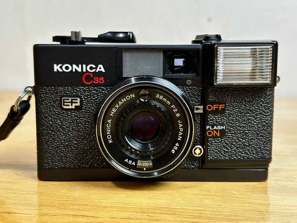 코니카 C35 EF 필름카메라 판매 • 작동 상태: 기능 정상 • 셔터, 필름 이송, 노출, 플래시 모두 OK • 렌즈: HEXANON 38mm f2.8 선예도 좋은 코니카 명렌즈 • 외관 상태 양호 (사진 참고) • 필름 넣고 바로 촬영 가능 입문용 필름카메라로 쓰기 좋고, 내장 플래시 있어서 실내 촬영도 편합니다. 문의 주세요 🙂