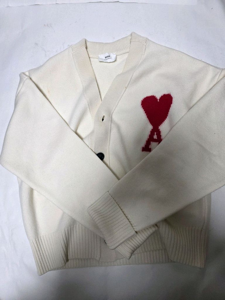 오프화이트 색상의 아미 빅 하트 가디건 XL 사이즈입니다. 오버사이즈 핏으로 나와서 편하게 입으실 수 있습니다. 문의 없으시면 바로 안전결제해주시면 됩니다!
