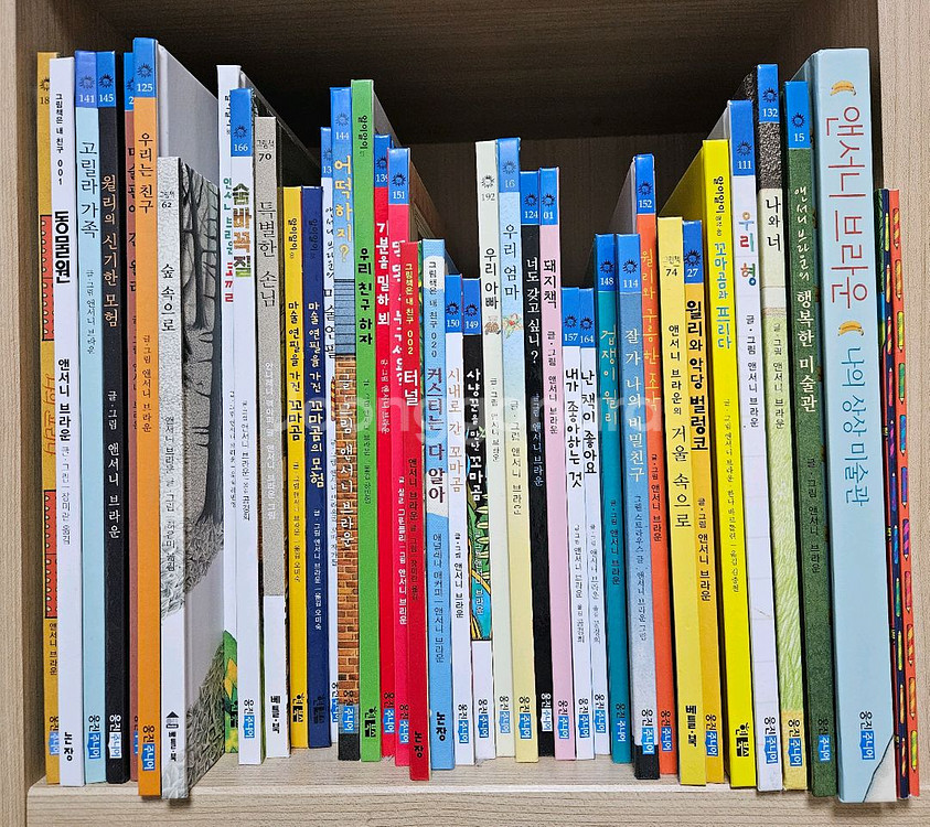 유명한 앤서니 브라운 작가의 그림책 전집 40권에 '색칠놀이' 1, 2권 같이 드립니다. 아이들의 상상력과 창의력 발달에 도움이 되는 책으로, 그림책을 통해 아이들이 세상을 이해하고 표현하는 데 도움을 줍니다 전체적으로 깨끗하게 봐서 책상태는 양호한데 아이가 특히나 좋아했던 꼬마곰 2권 뒷면과 색칠놀이 책 2권중 1 페이지에 색칠이 되어 있지만, 다른 페이지는 깨끗하게 사용 가능합니다. ☆제 판매내역에 다른 책들도 같이 구매하시면 서비스책도 많이 드릴게요~☆