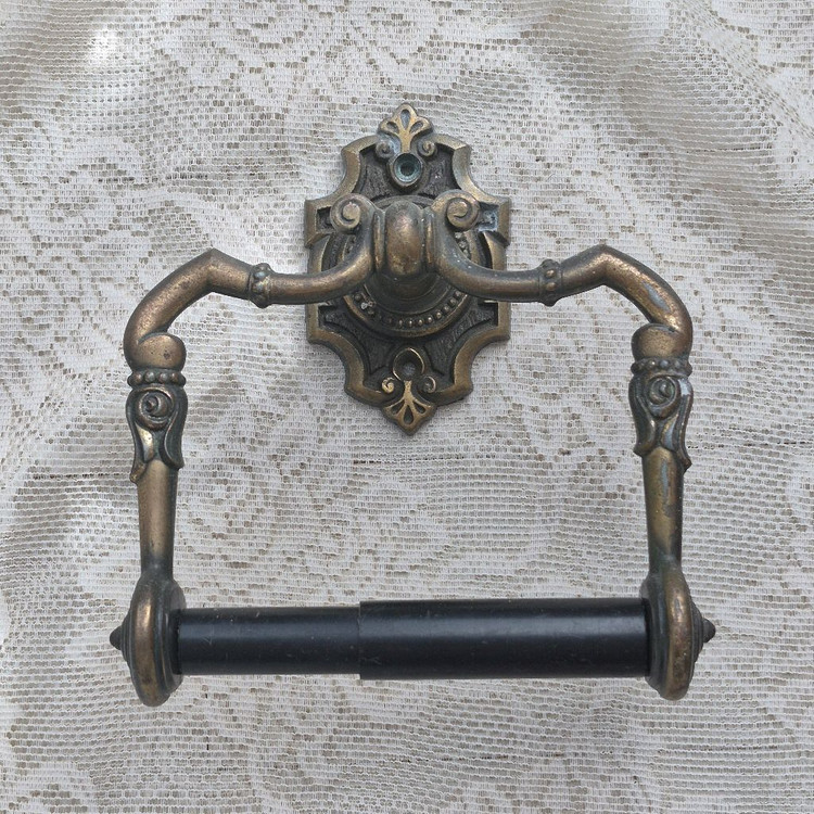 세로 약 18cm 걸이바 12.8cm 엔틱 브라스 마감으로 빈티지 페이퍼 또는 휴지 홀더로 장식부터 프레임, 손잡이 연결부까지 전체적으로 클래식한 조형미가 살아 있는 제품입니다. 중앙 플레이트에는 로코코풍의 스크롤 장식과 입체적인 볼륨감이 더해져 벽면에 설치했을 때 단순한 생활용품을 넘어 장식 오브제로서의 존재감이 분명합니다. 양쪽 암(arm)은 완만한 곡선으로 이어진 구조로 각 관절부마다 조각 디테일이 살아 있어 정면·측면 어느 각도에서 보아도 균형감 있는 실루엣을 보여줍니다. 페이퍼를 거는 바 부분은 블랙 컬러의 원통형 디자인으로 제작되어, 브론즈 톤 메탈과 대비를 이루며 전체 디자인에 안정감을 더합니다. 표면에는 과하지 않은 자연스러운 에이징이 남아 있어, 앤틱 제품 특유의 깊이감과 세월의 멋을 느낄 수 있는 흔하지 않은 앤틱 제품입니다. *** 빈티지 제품 특성상 사용감, 세월감 있어요. 하자 발견시 말씀드리지만 제가 발견하지 못한 하자가 있을 수 있습니다. 교환/환불 불가. 빈티지 제품 이해하는 분만 구매해주세요. ***