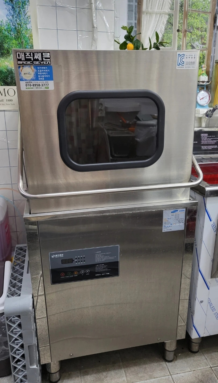 * 매직세븐 업소용 식기세척기 * 스테인레스 스틸 재질로 튼튼하며 전반적으로 깨끗한 상태 입니다 *23년 4월에 새상품 구매해서 24개월 사용한것을 지인에게 구입해다가 미사용 상태로 두었다가 몇일전에 세제구입과 세제 연결등 설치후 3회만 쓰고 식당을 접으려고 판매 합니다. * 식기바구니가 2개 있으며 내부.외부 꺄끗합니다. *직접 오셔서 가져가세요 제품 철거는 해두겠습니다 * 세제. 린스 포함된 가격이고 기계에 연결 작업과 세재 비용만 15만원이 들었습니다. * 수원시 장안구 율전동 '오늘홍어' 입니다