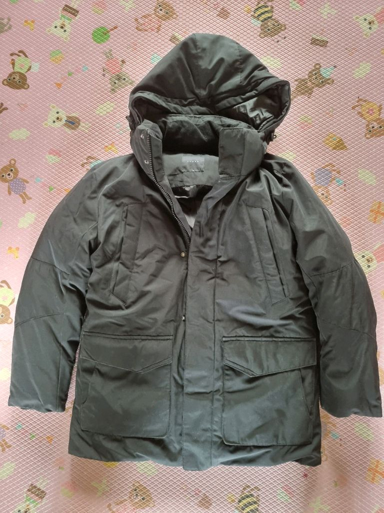 남성용 패딩점퍼예요. 후드가 있고 실용적인 포켓들이 많아서 활용도가 높습니다. 전체적으로 깔끔한 상태로 겨울철 착용하기 좋아요. 후드분리가능. 사이즈 95.