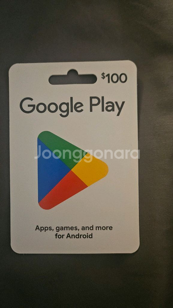 개인정보(거래정보)를 주고받는 행위는 사기에 노출될 수 있으므로 즉시 중고나라로 신고해 주세요플레이 스토어에서 사용 가능한 100달러 기프트카드예요. 앱스, 게임 등 다양한 콘텐츠 구매에 활용하실 수 있습니다.