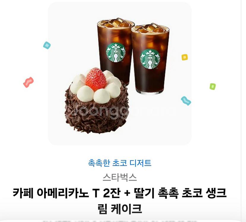 스타벅스 카페에서 제공하는 아메리카노 T2잔과 촉촉한 초코 생크림케이크 세트예요. 아이스크림까지 포함된 특별한 구성으로 맛있는 하루를 시작할 수 있어요! 14,100원, 20프로할인가격입니다 010-5147-28오둘