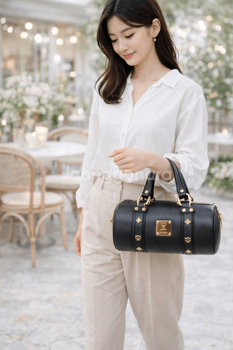 미사용 MCM 정품 보스턴 원통 토트백 숄더백 겸용 줄까지도 너무 예쁘고 고급스러운 가방 힘주지 않아도 멋이 되는, 손에 들면 더 예쁜 가방 부담 없이 들었는데, 시선은 머무는 가방 분위기는 확실하게 차분하게, 클래식한 가방 팔 아래 자연스럽게 떨어지는 핏으로 가장 예쁜 연출 사진보다 실물이 더 예쁜 타입 캐주얼부터 오피스룩까지 활용도 높은 디자인 유행 타지 않는 디자인이라 오래 사용 가능 오늘의 옷차림에 조용히 고급스러움을 더하는 가방 MCM 정품 원통형 가방