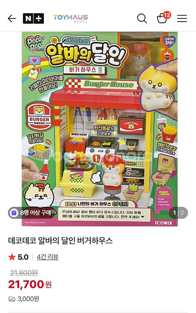 2-3번 가지고 놀았어요~ 구성품 중 작은 하얀 접시빼고 모두 있어요~ 아이가 스티커 붙이는걸 좋아해서 겉박스에 투명테이프가 붙어있는거말고, 조립하는 구성품은 매우 깨끗합니다. 2-3번 조립했던거라 구성품의 종이벽은 아주 조금 구겨져있어요 참고해주세요! GS반택 가능합니다.
