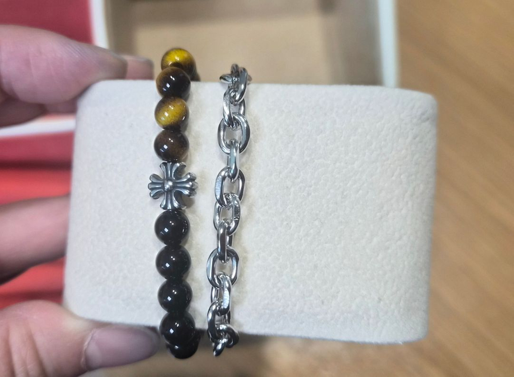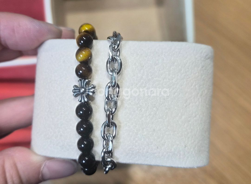 호안석이랑 2중으로 되어있는 팔찌예요. 멋지고 힙한느낌에 고급스러움이 더 해졌어요. 제 손목은 17cm이구요, 가장 짧게 착용한모습이예요. 손목 굵으신 분들 모두 가능하세요. 길이는 사진 참고바랍니다. 진짜 싸게 내놔요.