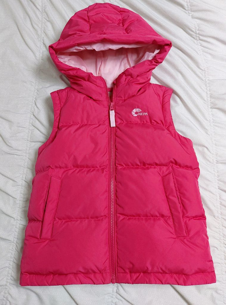 아동 네파키즈 덕다운패딩베스트120 핑크패딩조끼 시착외새상품