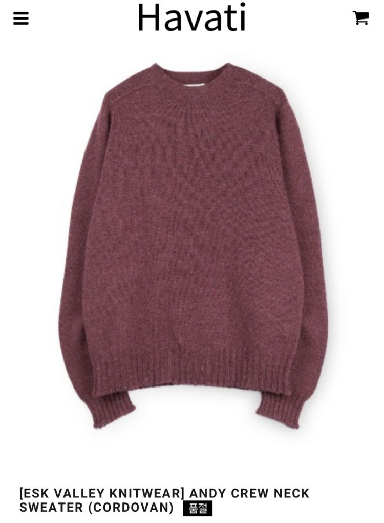 브랜드: ESK VALLEY KNITWEAR 제품명: ANDY CREW NECK SWEATER Color: CORDOVAN 사이즈: XXL (실측 마지막 사진 참고) 구매처: 하바티 1회 가볍게 착용한게 전부라 사실상 새상품 같은 컨디션입니다. 가장 큰 사이즈고 품절 컬러로 버건디와 퍼플 중간쯤 오묘한 매력이 있는 색상입니다. 할리오브스코틀랜드, 하울린 같은 브랜드 대비 숏한 기장감이 특징 입니다.