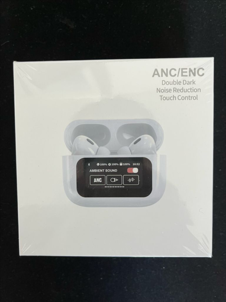 미개봉 제품 이어폰집에 스크린이 달려있고 노이즈 캔슬링 기능이 있어요 - 이어폰 시간: 약 5시간 - 충전 소요 시간: 약 1시간 - 충전 포트: C타입 직거래, 택배 모두 가능합니다! 직거래: 노원역