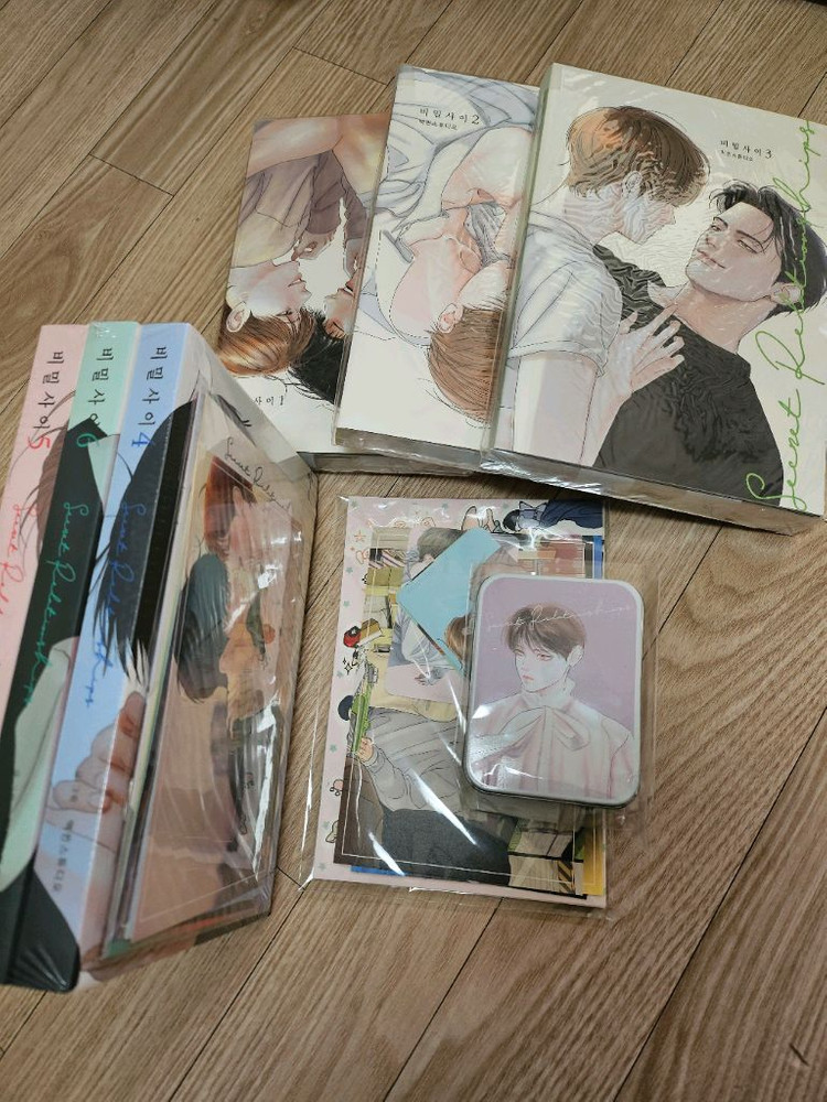 비밀사이 1-6권 판매합니다 특전 다 있습니다. 중고 거래 특성 상 어떠한 경우에도 교환, 환불, 반품 불가 배송 중 일어나는 사고로 인한 파손 책임X 전부 개봉된 책들이며, 0PP봉투 랩핑하여 보관했습니다 소장 목적으로 구매한 것들이라 구매하고 따로 펼쳐본 적 은 없습니다. 책 상태는 대부분 큰 흠(낙장, 벌어짐, 심각한 파손, 찢어짐 심한얼룩)이 없지만 사람의 손을 탄 책이기 때문에 예민하 신분들은 피해주세요 신중하게 생각해 보시고, 꼭 구매하실 분들만 연락드립니다. 택배는 편의점 택배를 이용하여 택배비는 별도 입니다.(0.4)